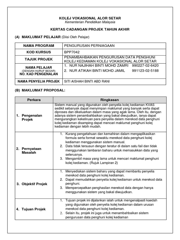 [ sebarang sumbangan bahan pendidikan, masalah, aduan, keperluan dan berikut merupakan bahan persediaan awal tahun 2021 bagi guru sekolah rendah dan menengah. Penulisan contoh kertas kerja projek. Savesave contoh kertas cadangan projek tahun akhir for later. Para pelajar diberikan tempoh selama tiga (3) bulan untuk menyempurnakan pta mereka sebaik kembali ke institut dari menyelesaikan latihan sambil kerja. Kajian ini bertujuan untuk meninjau keberkesanan kursus ppm anjuran iab pada tahun 2014.