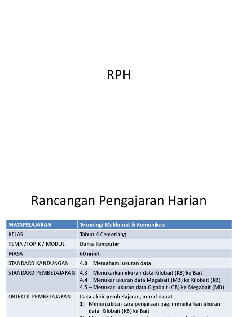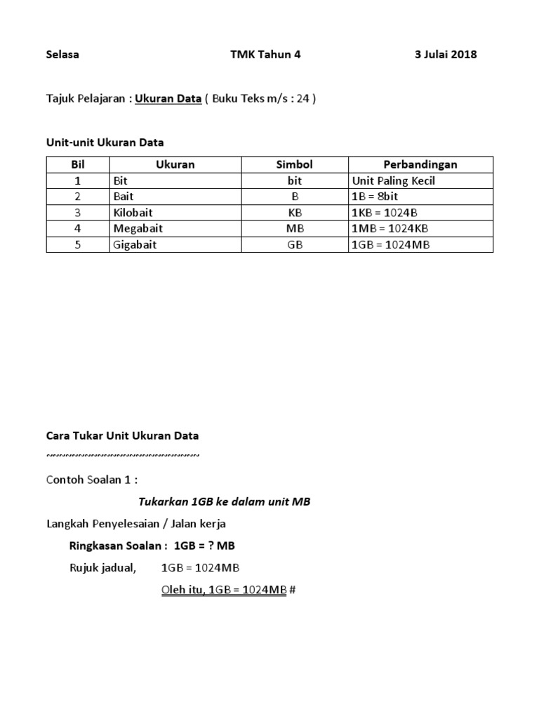 Rph Tmk Tahun 4 Kssr Menerangkan Maksud Data Pdf Document from reader016.vdocuments.mx _ merupakan ukuran terkecil bagi data dalam komputer. Membuat pengiraan dengan menukar unit ukuran data gb, mb dan kb kepada unit yang lebih kecil dan. Bil ukuran simbol perbandingan 1 bit bit unit paling kecil 2 bait b 1b = 8bit 3 kilobait kb 1kb = 1024b 4 megabait mb 1mb = 1024kb 5 gigabait gb 1gb = 1024mb cara tukar unit ukuran. Tema dunia komputertopik 4.0 ukuran data. Tmk peperiksaan pertengahan tahun 2014 tmk tahun 4. .ukuran pemusatan data, ukuran penyebaran data disusun oleh: Tmk tahun 4 multimedia modul 3 bm. 5/22/2018 rph tmk tahun 4.