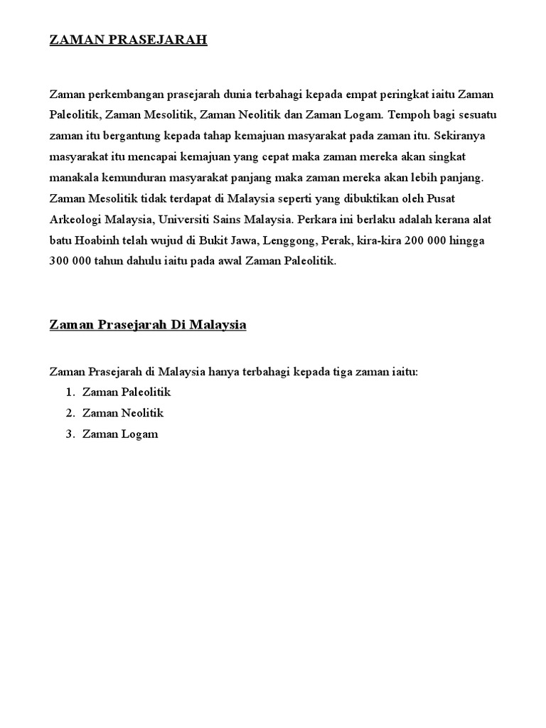 Laman web video kurikulum : Zaman ini berlangsung sekitar selama 2.500 juta tahun yang lalu pada saat itu, kulit bumi masih panas sehingga belum terdapat kehidupan. Zaman tertua di dalam perkembangan bumi dan segala yang hidup di bumi, berumur sekitar 545 sampai 4.5000 juta tahun yang lalu. Documents similar to zaman prasejarah sejarah tahun 4. Zaman prasejarah prasejarah ialah zaman manusia belum mempunyai tulisan.