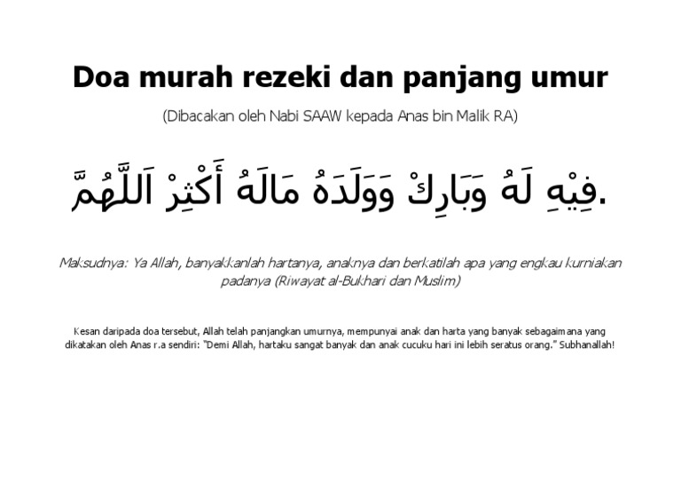 Related : Doa Murahkan Rezeki / Doa murah rezeki & 5 cara rawatan bagi pesakit sihir & saka..